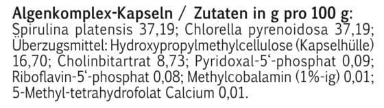 Die Algen Spirulina und Chlorella sind reich an pflanzlichen Proteinen, Aminosäuren, essentiellen Mineralstoffen, Spurenelementen, Vitaminen und sekundären Pflanzenstoffen. In Kombination mit B-Vitaminen in ihrer aktiven Form sorgen sie für das Plus an Energie.
